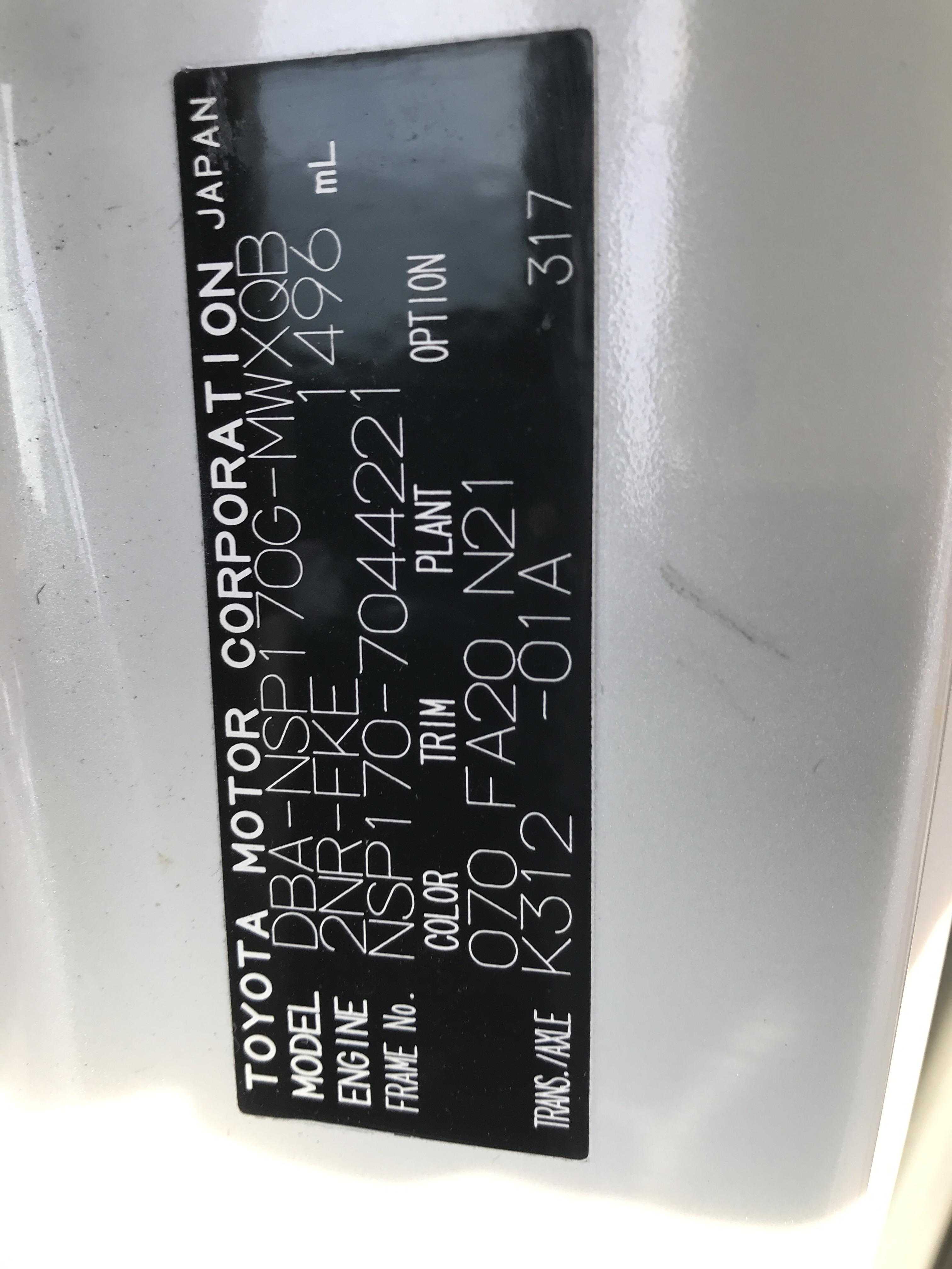 | Make | TOYOTA | Model | Sienta |