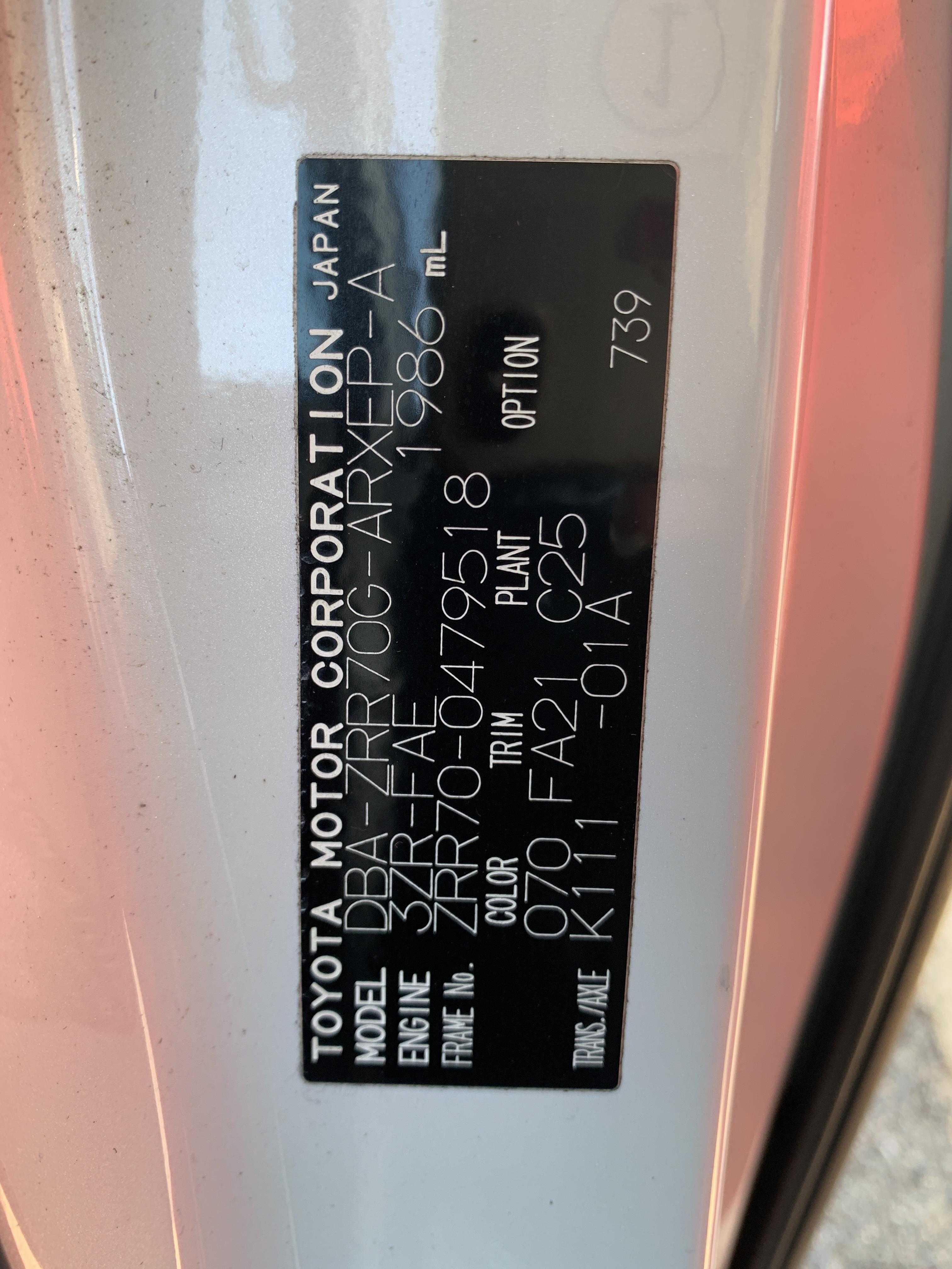 Year 2012/2 Chassis ZRR70G-0479518