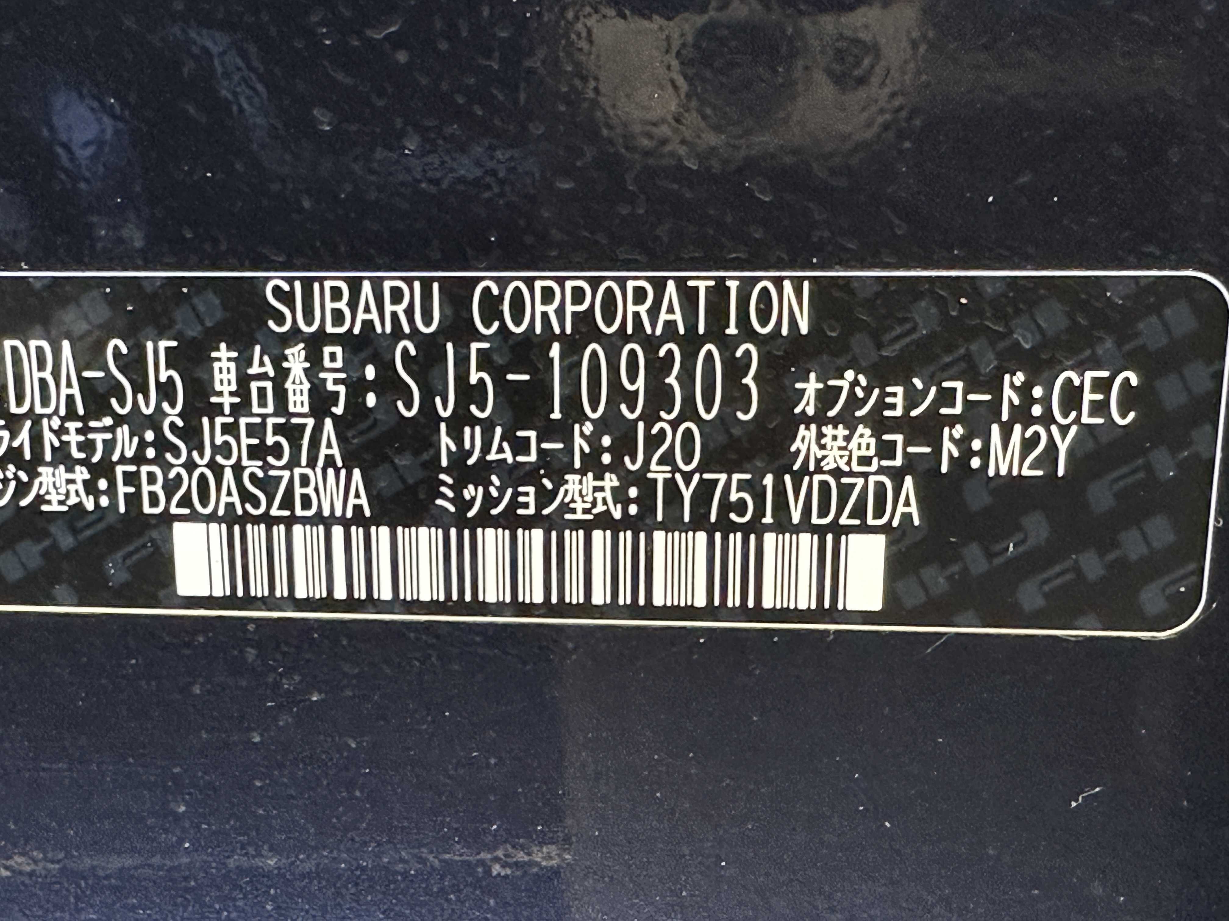 | Make | SUBARU | Model | FORESTER |
